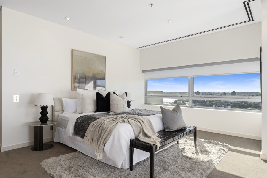 Designed to deliver a true sense of space and privacy, the home features expansive living and entertaining areas framed by floor-to-ceiling glass, capturing the ever-changing harbour and city backdrop.